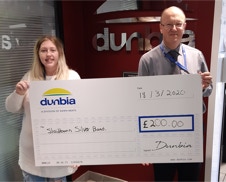 Presentation of donation from local company, Dunbia, to conductor John Cowking, by Charlotte Hall