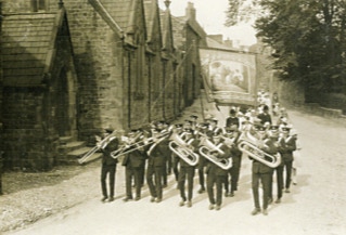 Slaidburn Band marching in Slaidburn. 1907.