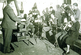 Band practice, under the direction of Bill Oddie. c1950.