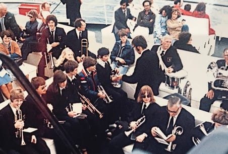Crossing the Channel for the Band’s second trip to France, 1978.
