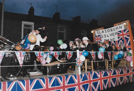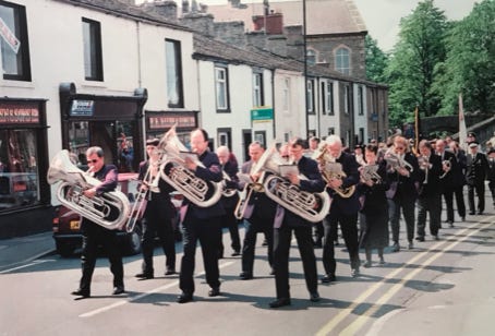 Marching in Kirby Lonsdale at a contest. 1990.