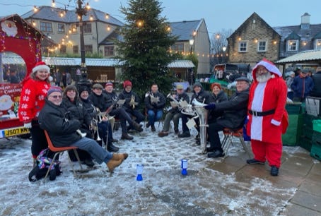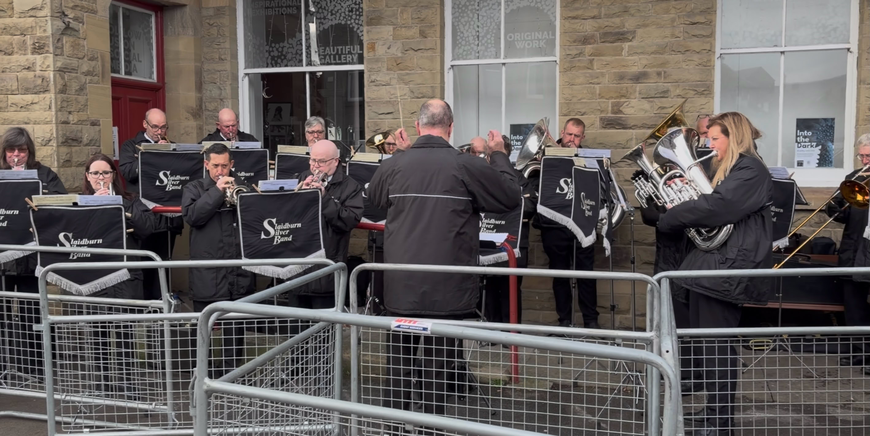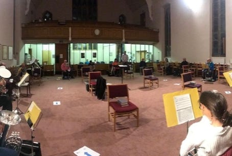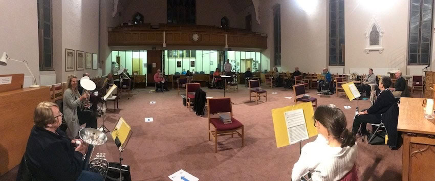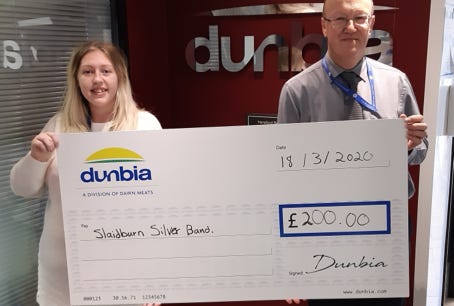 Presentation of donation from local company, Dunbia, to conductor John Cowking, by Charlotte Hall. 20th March 2020