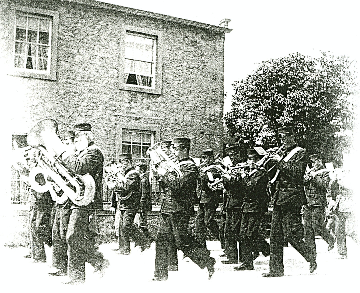 Slaidburn Band marching in Slaidburn. 1907.
