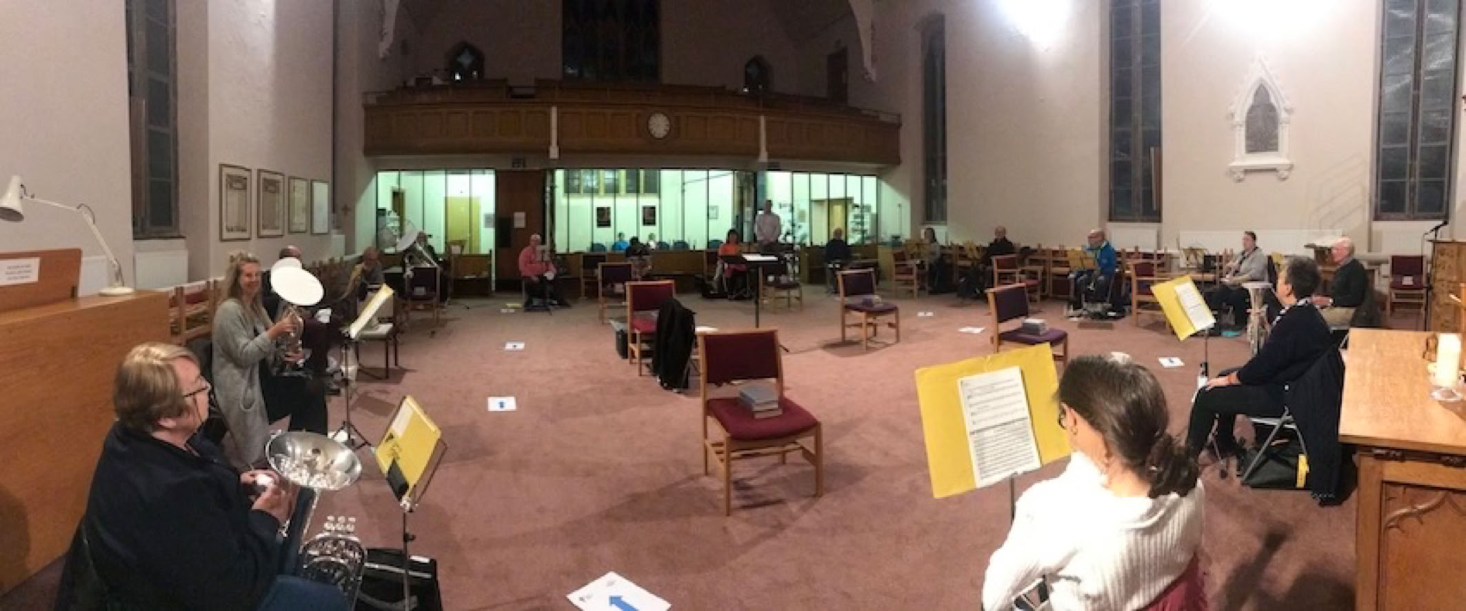 The photograph above shows the band at the United Reform Church, Clitheroe, following strict Covid security measures, as recommended by Brass Band England.