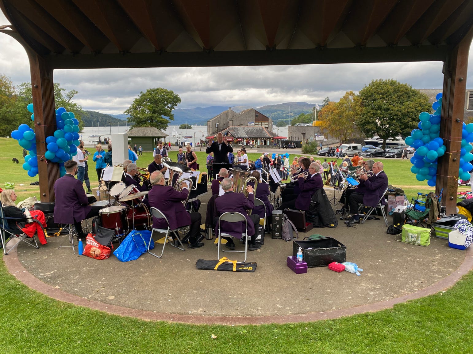 The band went on a coach outing to the Lake District to support a charity event. A selection of music was played to celebrate the completion of a 100 mile run, from Leeds to The Glebe at Bowness on Windermere, by Tash and Caz. They were raising funds for ‘BAGS for Strife’, (click here to visit the site) a charity to support anybody affected by suicide.