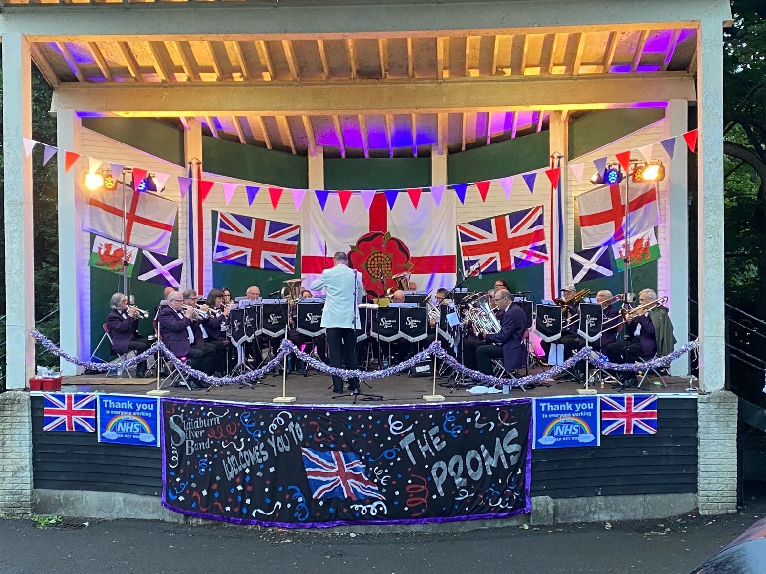 Postponed from last year, due to the Covid pandemic, Slaidburn Silver Band performed The Last Night of the Proms Concert on the bandstand in the Clitheroe Castle Memorial Park Grounds. This was the first concert the band had been able to give for 18 months.